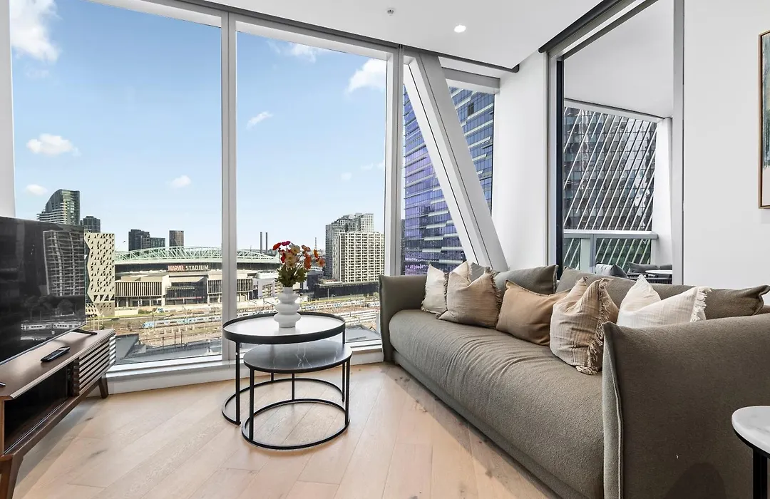 59m²のMarvel Stadium Views - Modern And Bright Apt With Pool メルボルンはメルボルンの住宅街に位置しており、St James Old Cathedralから徒歩で5分です。 涼しいプライベートなプールでくつろぐこともできます。